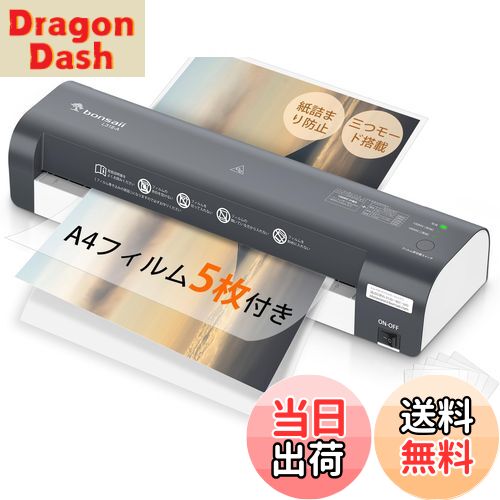 【送料無料】bonsaii ラミネーター a3 三つモード搭載 5枚A4フイルム付き 100%紙詰まり防止 名刺~A3サイズまで対応 ウォームアップ時間3.5-4分 波打ち防止 気泡なし 100μmフィルム対応 ラミネート機械 静音 業務用 コンパクト L318-A