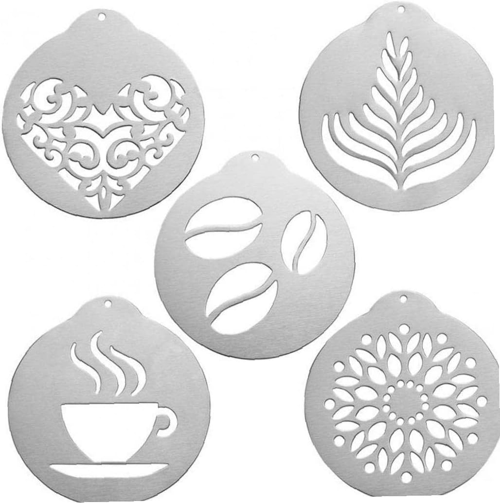 5枚セット コーヒーステンシル ステンレス アートステンシル バリスタ テンプレート飾る ケーキ カプチ..