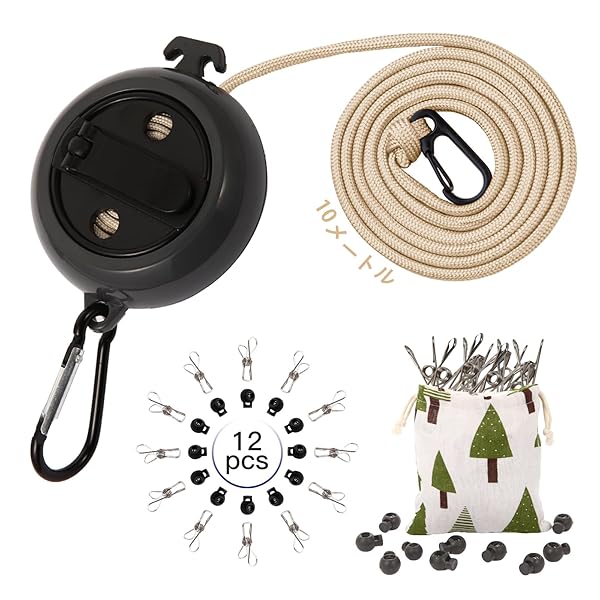 キャンプ用物干し、ホテル旅行、クルーズ、12pc洗濯バサミとストッパー付き屋外/屋内用ランドリー乾燥..