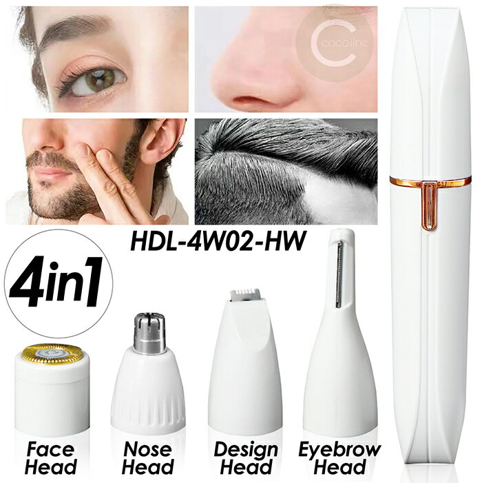 トリマー 乾電池式 4in1 アイブロウ フェイス ノーズ デザインヘッド 4つのアタッチメント 軽量コンパ..