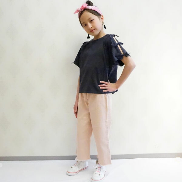 【Giggle 50%OFF SALE】ギグル 腰ひも付きロングパンツ ブラック ピンク 子供服 キッズ ユニセックス ..