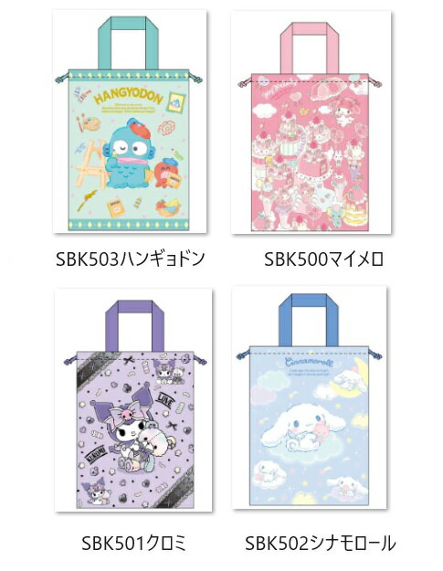 巾着シューズバック(マイメロ/クロミ/シナモロール/ハンギョドン/すみっコ/プリンセス/ティラノサウル..
