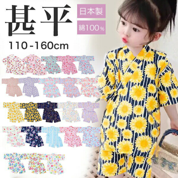 甚平 女の子 キッズ 上下セット セパレート 日本製生地 綿100% 110cm 120cm 130cm 140cm 150cm 160cm ..