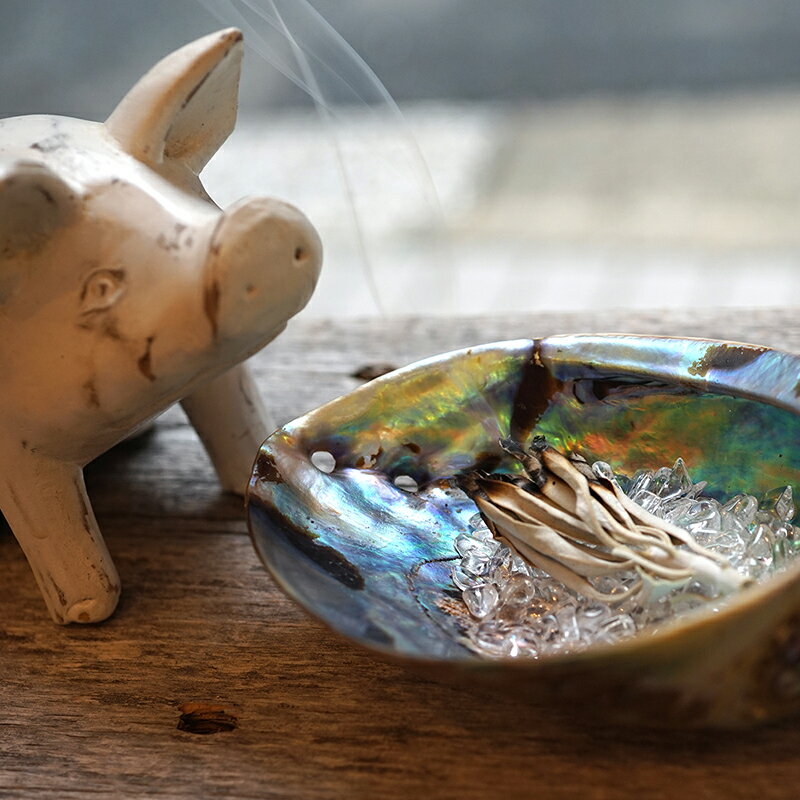アバロンシェルとクリスタルさざれの浄化セット【ホワイトセージ・お香・キャンドル用の受け皿】LUCAS ..