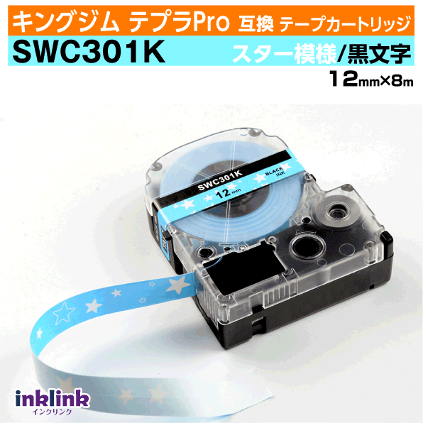 キングジム テプラPro用 互換テープカートリッジ SWC301K 12mm幅〔模様テープ〕スター模様地 黒文字 ブ..