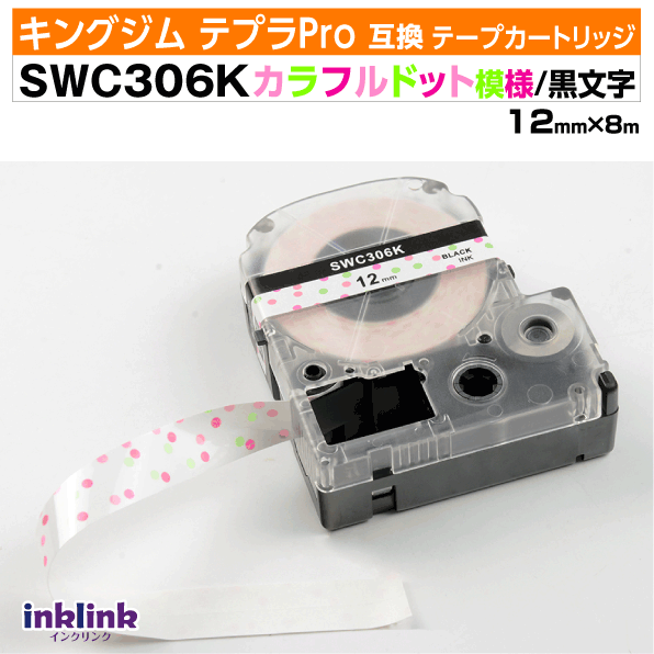 キングジム テプラPro用 互換テープカートリッジ SWC306K 12mm幅〔模様テープ〕カラフルドット模様地 ..