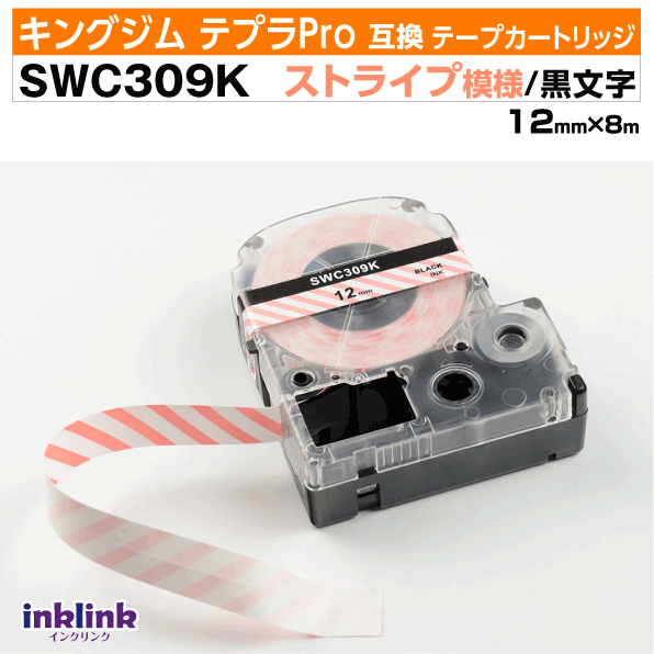 キングジム テプラPro用 互換テープカートリッジ SWC309K 12mm幅〔模様テープ〕ストライプ模様地 黒文..