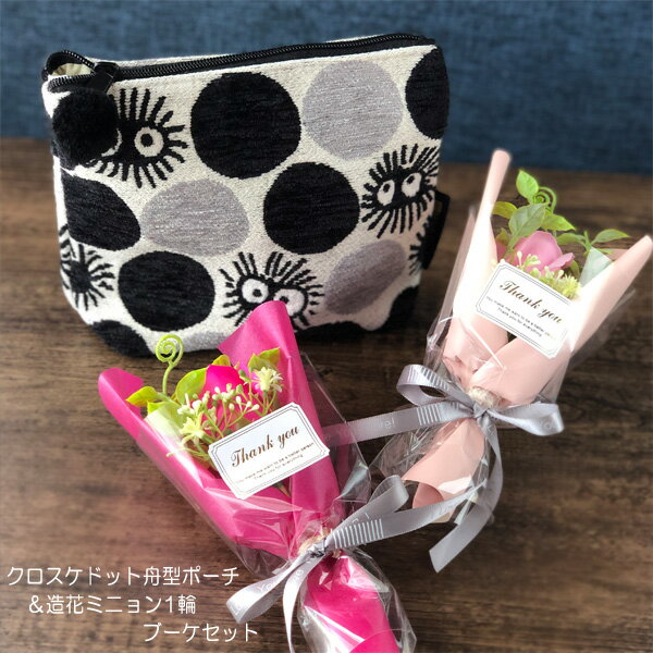 ジブリ グッズ となりトトロ クロスケドット舟型ポーチ&造花ミニョン1輪ブーケセット(ブーケ色選択式)..