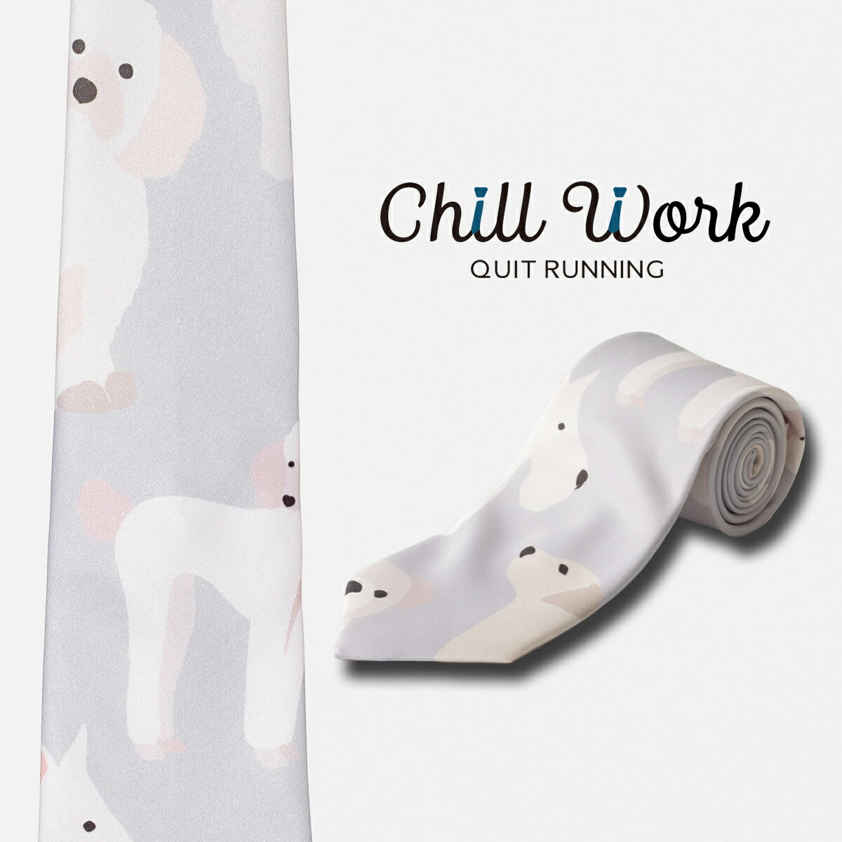 総柄とろみネクタイ ドッグ デザイン 洗えるイージーケア 太め ライトグレー CHILLWORK ウォッシャブル..