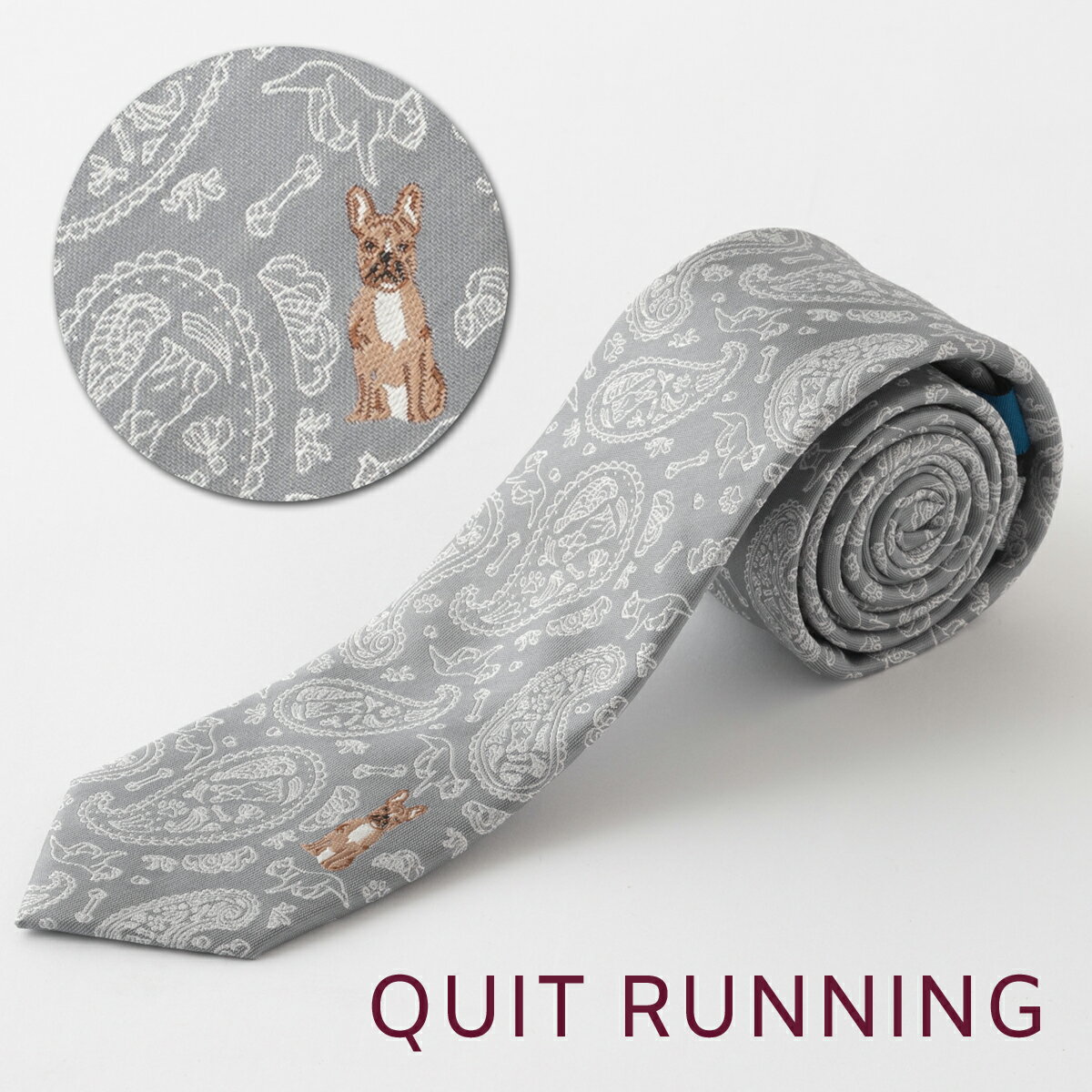 犬好きの方に ドッグ フレンチブルドッグ デザイン ネクタイ ナロータイ 刺繍 洗えるイージーケア ライ..