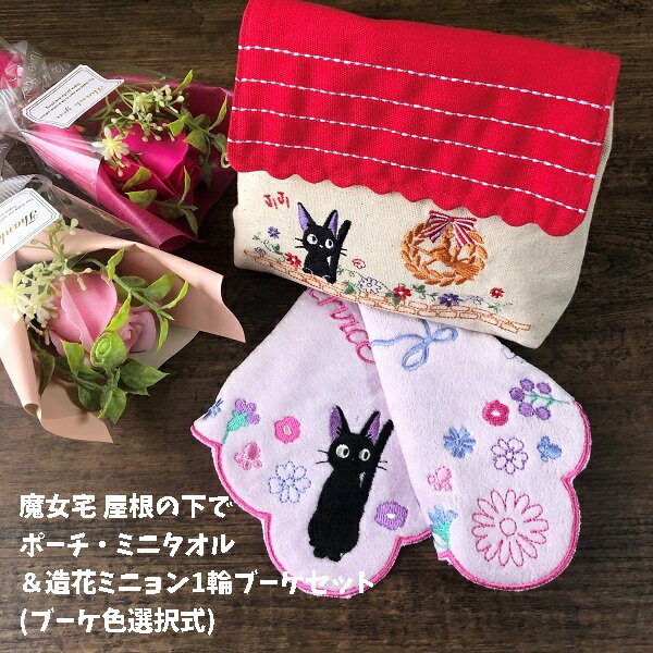 ジブリ グッズ 魔女の宅急便 屋根の下でポーチ&フラワーレーンミニタオル&造花ミニョン1輪ブーケセ..