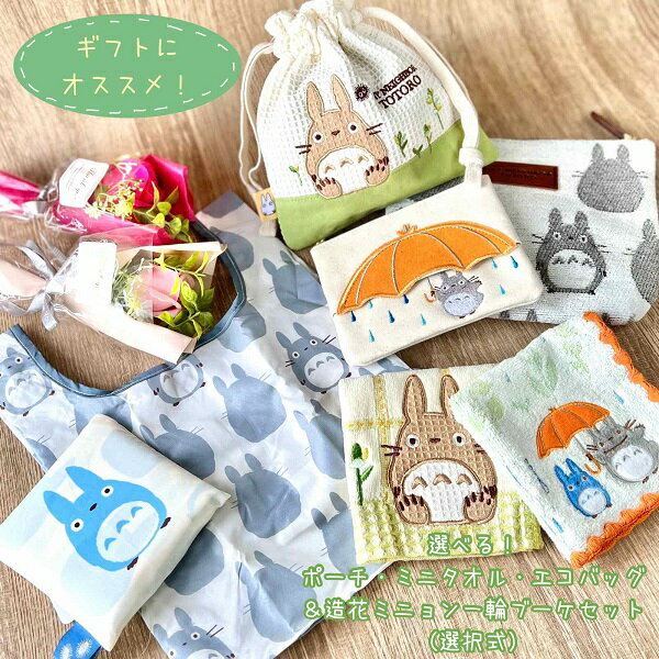 ジブリ グッズ 選べる!ポーチ・ミニタオル・エコバッグ&造花ミニョン1輪ブーケセット(ブーケ色選択式..