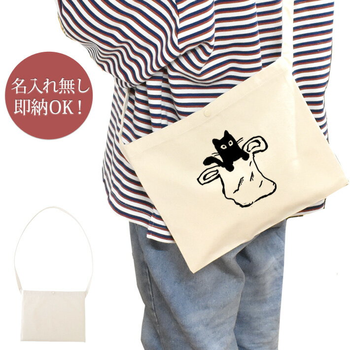 【即納 名入れ無し】 誕生日 プレゼント サコッシュ 肩掛け ショルダー 袋入り黒猫 ネコ 猫グッズ おも..