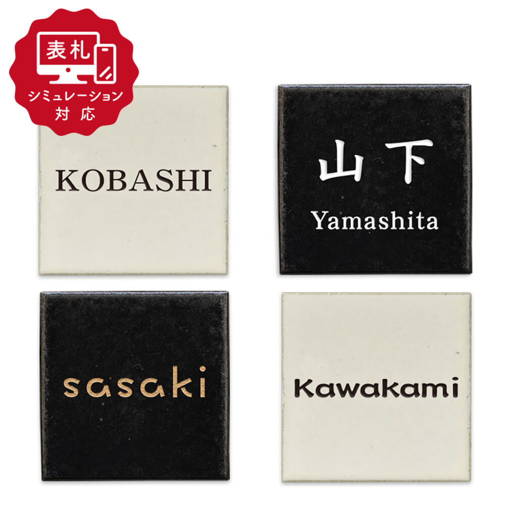 表札 三協アルミ 三協立山 陶器 (信楽焼) 壁付け専用 T-1 ベージュ 200角タイプ 正方形 表札シミュレー..