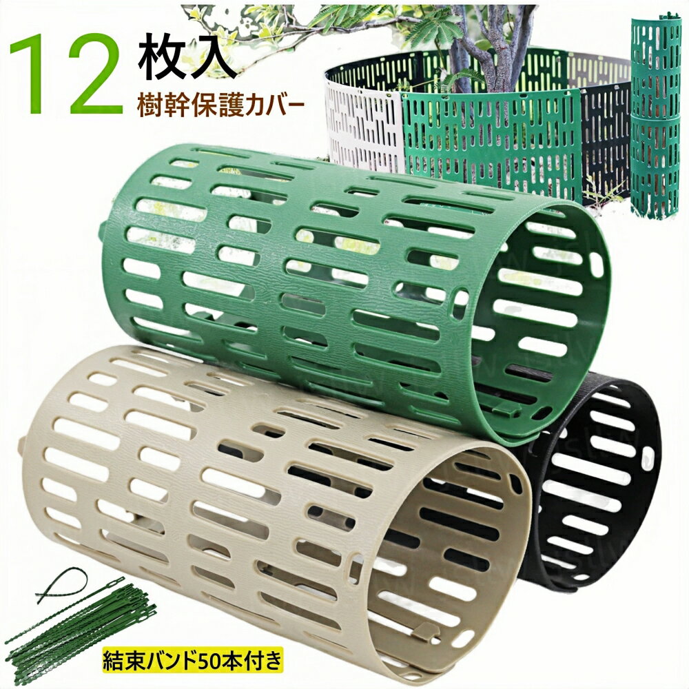 樹木保護カバー 12枚入 幹保護カバー 結束バンド付き フェンス プラスチック 調節可能 連結式 ガードカ..