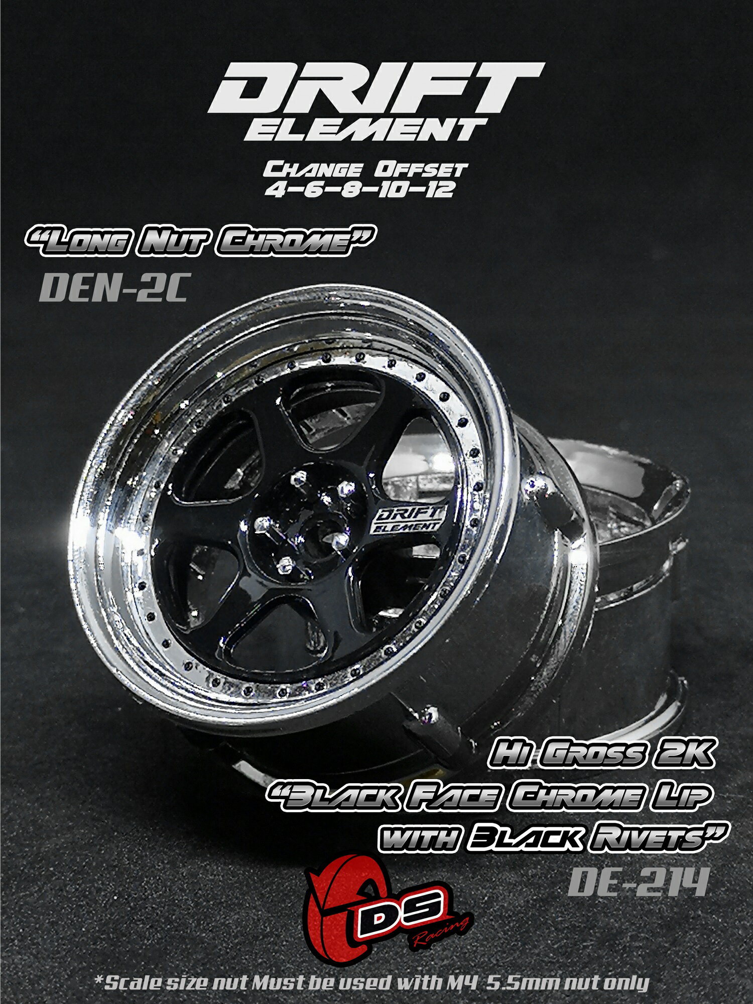 DRIFT ELEMENT SERIES RIM:Gloss Black 6Spokes Chrome Lip Chrome Rivets ドリフト エレメントシリ..