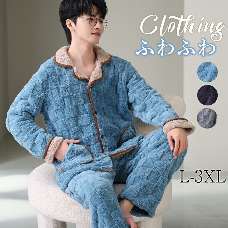 ルームウェア もこもこ パジャマ 秋 冬 メンズ 上下セット 部屋着 前開き 厚手 冬 ふわふわ あったか ..