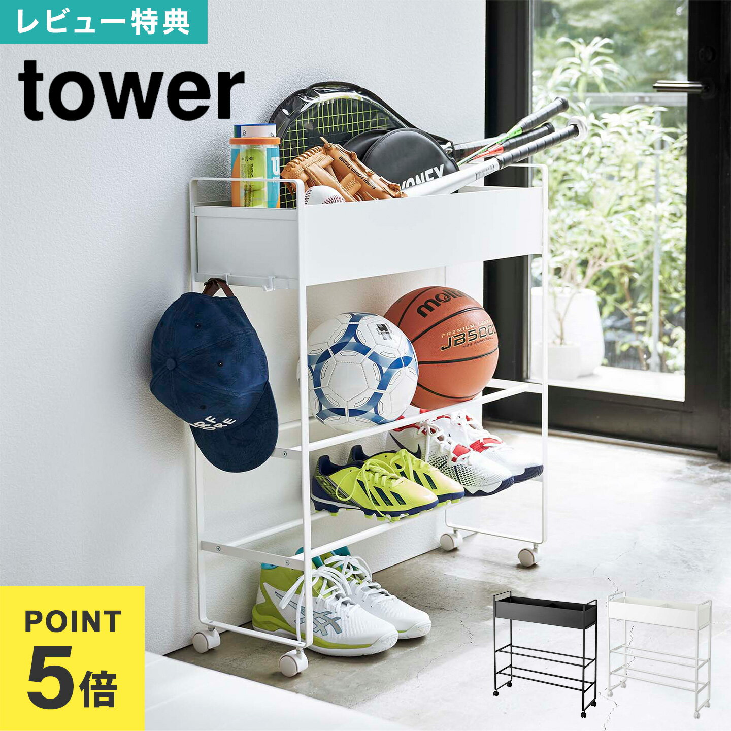 【10月25日はポイント最大10倍祭!】キャスター付き 玄関収納ラック タワー tower 靴箱 ボールスタンド..
