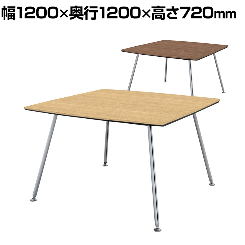 【法人送料無料】会議テーブル 幅750×奥行750×高さ700mm ソフトエッジ巻 クロームメッキ脚 ミーティン..