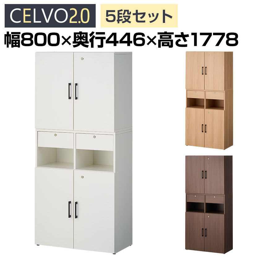 【法人様限定】セルボ2.0 木製キャビネット上下セット 2列3段扉付+2列2段扉付 積み重ね型 幅800×奥行44..