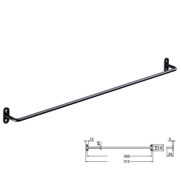 シロクマ 一文字掛棒 ネクタイ掛け 300 ブラック NH-6