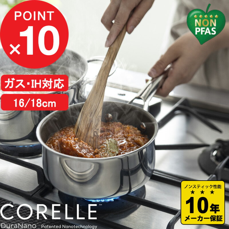 お買物マラソン/ CORELLE 《 コレール ソースパン 16cm 18cm ガラスふた付 》 ノンシリコーン PFASフリ..