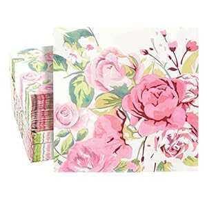 ピンクの花柄ペーパーナプキン 150枚パック ブライダルシャワー、誕生日、春のティーパーティー用 (6.5..