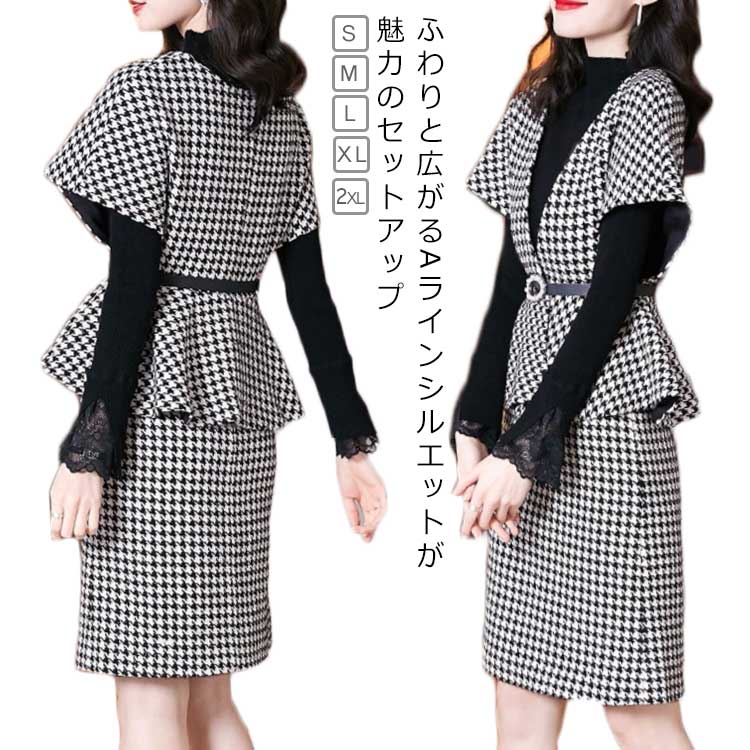 レディーススーツ セットアップ ニットワンピース 上下セット スカートスーツ ロング丈ワンピース レデ..