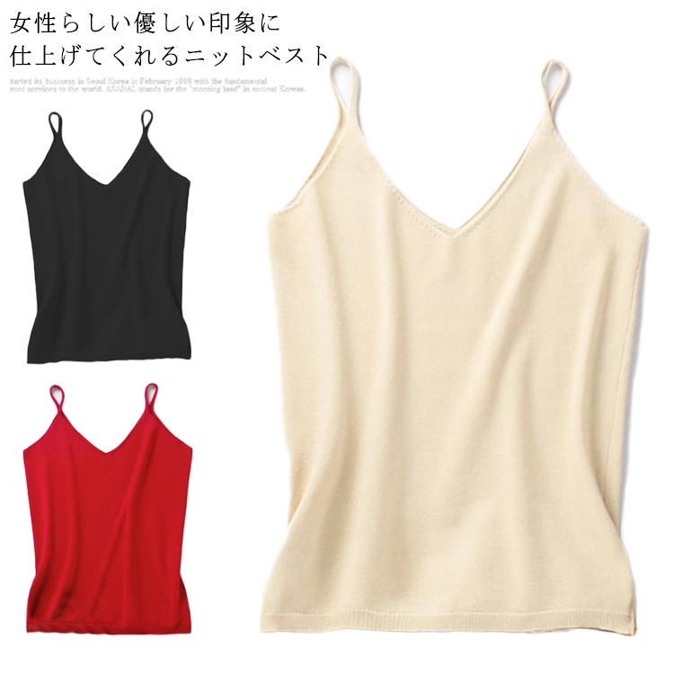 送料無料ニットベスト レディース ニットトップス キャミソール ノースリーブニット Vネック 重ね着 ア..
