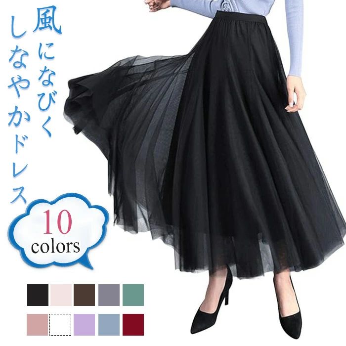 【送料無料】スカート レディース ロング プリーツ スカート チュール パンツドレス マキシ丈 おしゃれ..