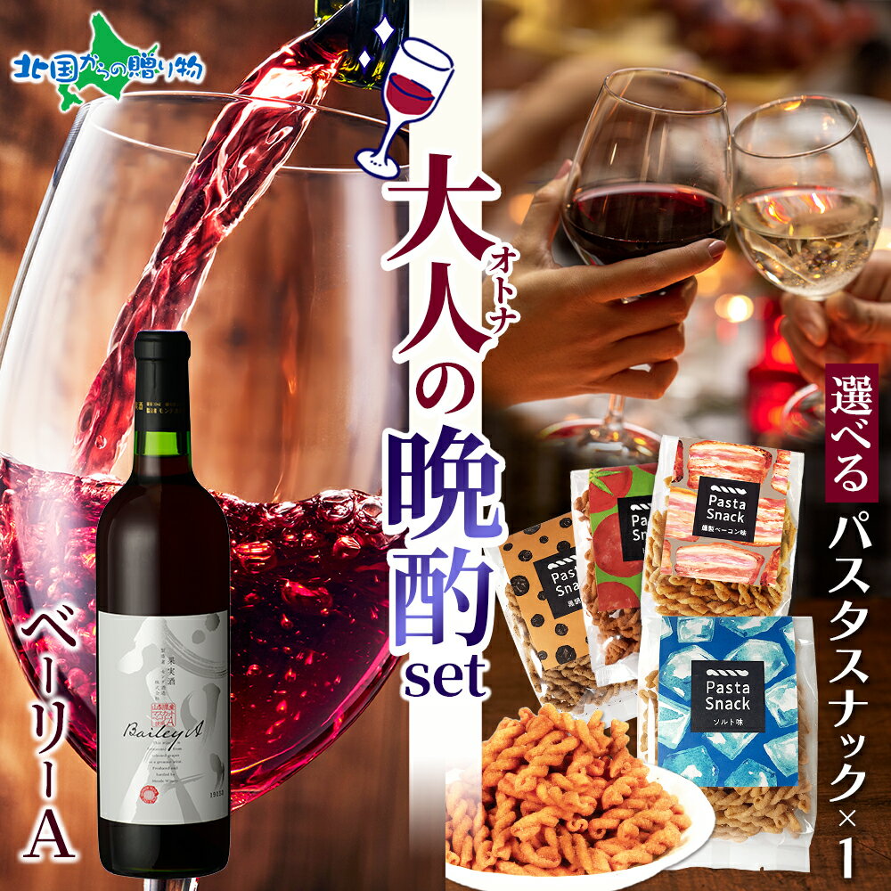【マラソン10%OFFクーポン!】大人の晩酌セット メルロ&ブラッククイーン1本 720ml&パスタスナック(..
