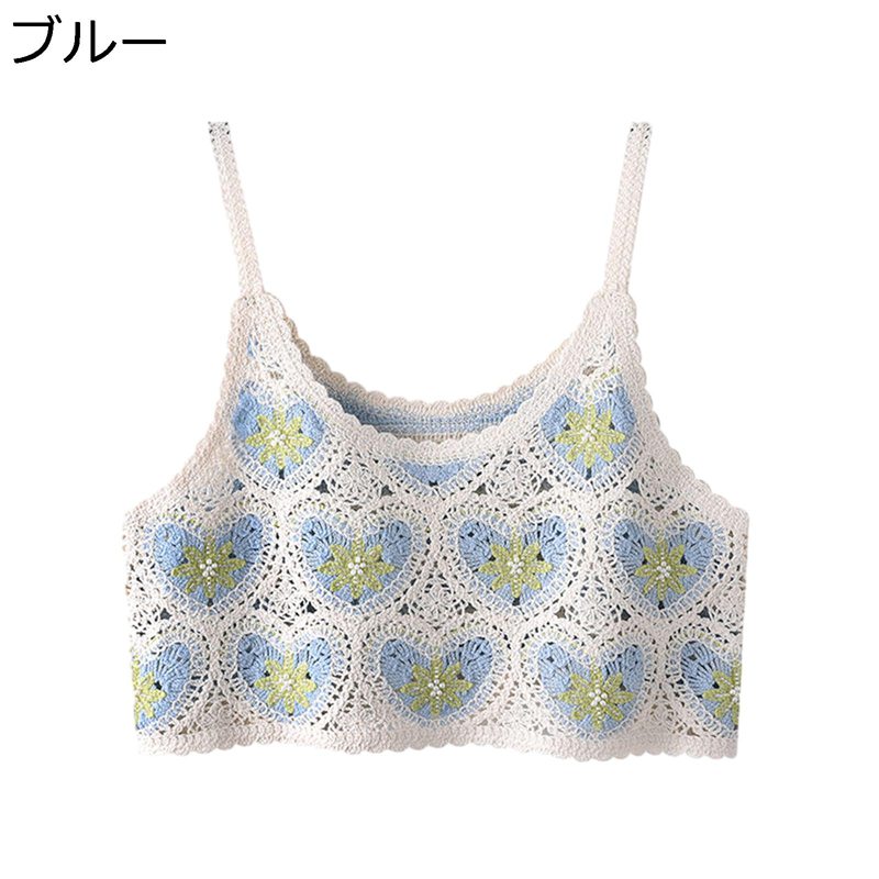 キャミソール レディース ニットベスト ショート丈 多彩 可愛い 透かし編み ブラ タンクトップ 重ね着 ..