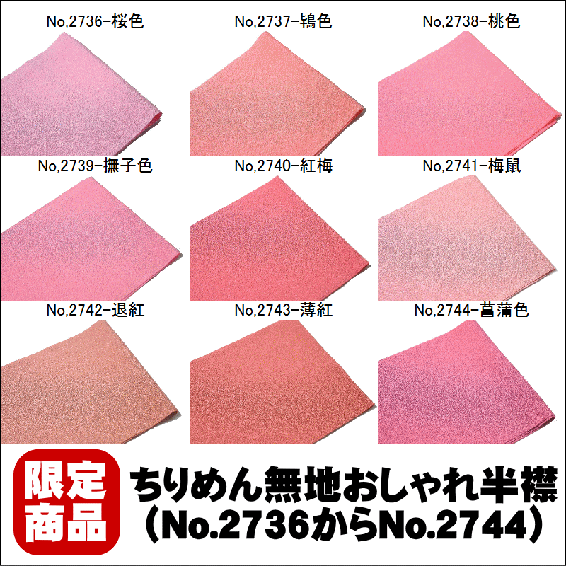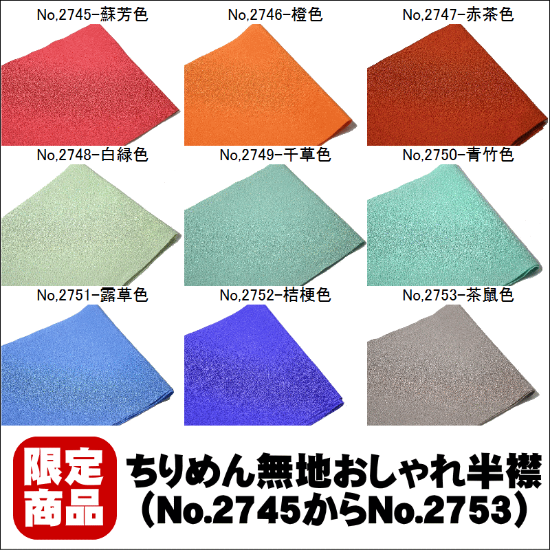 ちりめん無地おしゃれ半襟無地タイプ(No.2745からNo.2753)品質表示本体素材ポリエステル100% 半衿 ..