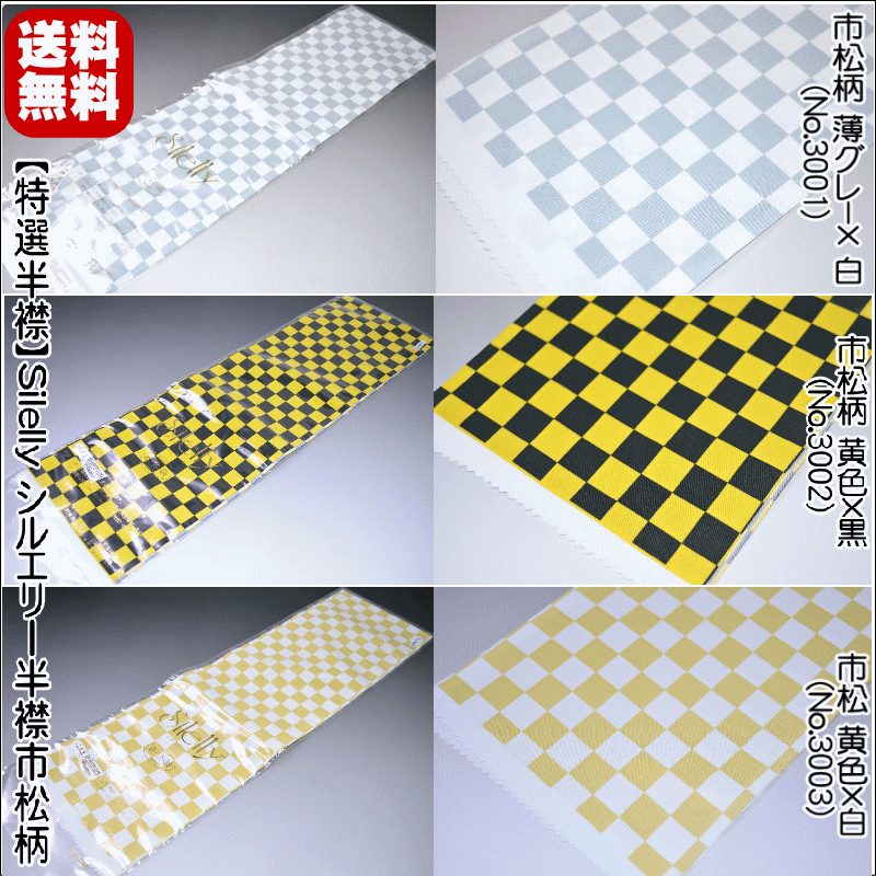 【送料無料】【在庫処分】【特選半襟】Silelly シルエリー半襟市松柄 (薄グレー✕ 白No.3001)(市松柄..