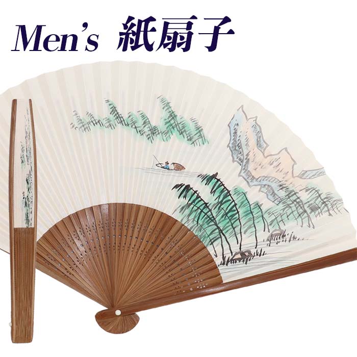 扇子 男性用 メンズ 紙扇子 紙製 35間 22.5cm 流水に笹舟 1213 おしゃれ シンプル 白 ホワイト 通勤 通..