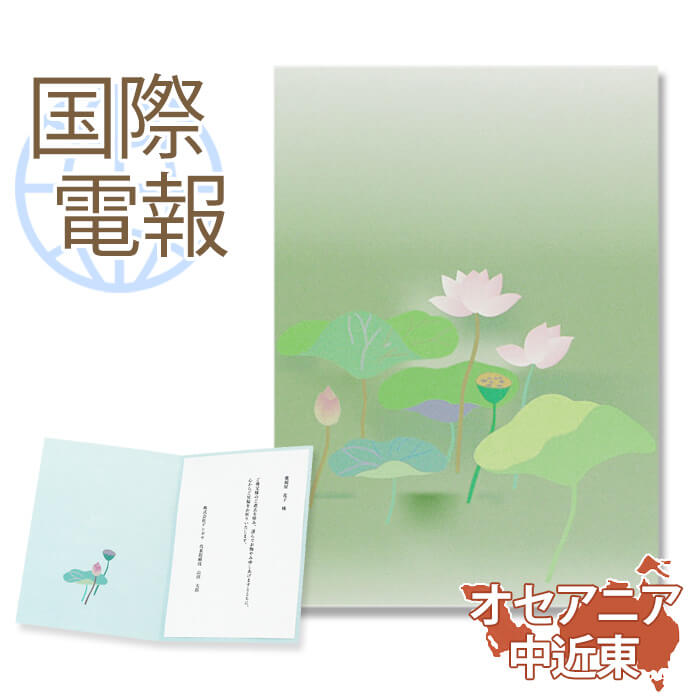 国際電報 弔電 お悔やみ 紙素材カード 「蓮華」 【海外 オセアニア・中近東あて専用】 送料無料 海外電..