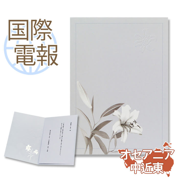 国際電報 弔電 お悔やみ 紙素材カード 「白い百合」 【海外 オセアニア・中近東あて専用】 送料無料 海..