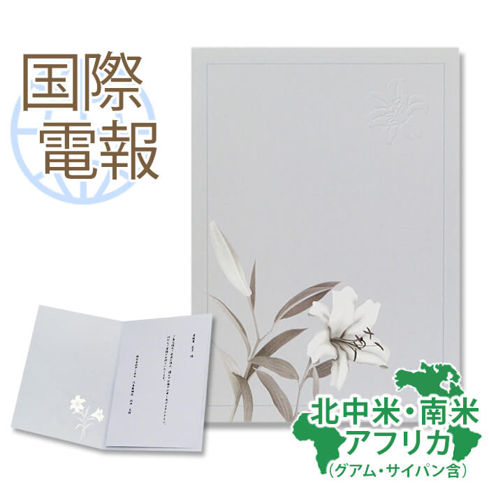 国際電報 弔電 お悔やみ 紙素材カード 「白い百合」 【海外 北中米・南米・アフリカあて専用】 送料無料..