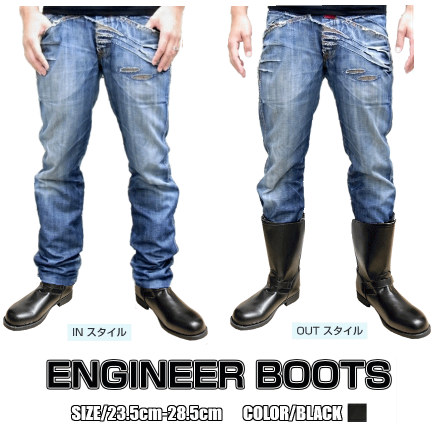 本革 エンジニア ロングブーツ ユニセックス スチールトゥ グッドイヤーウエルト エンジニアブーツ メ..