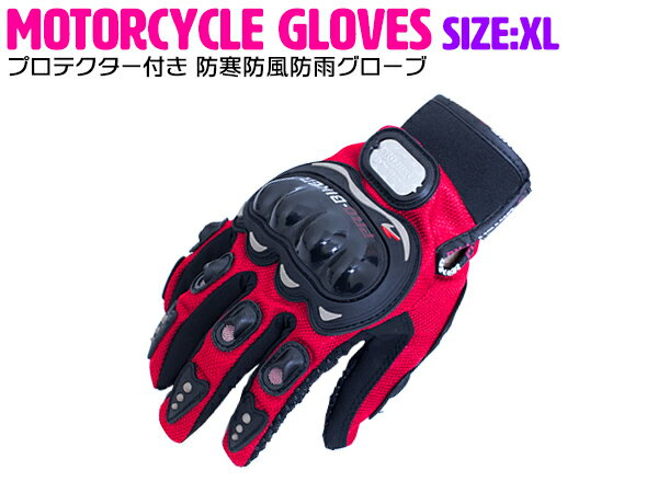硬質メッシュ バイク用 グローブ XLサイズ プロテクター付き 手袋 赤/レッド 【バイクグローブ 自転車 ..