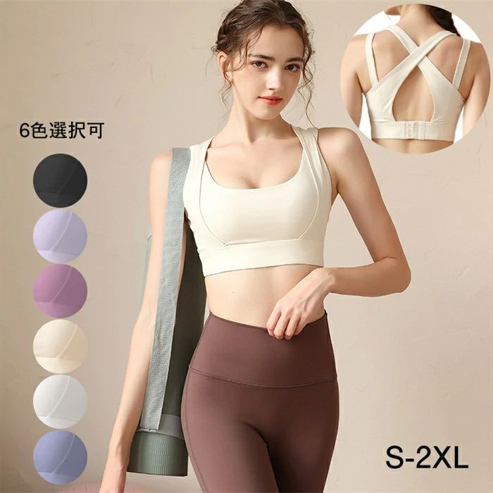 【激安販売中!】ヨガウェア トップス カップ付き スポーツブラ レディース おしゃれ クロス ノンワイヤ..