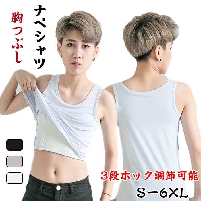 ナベシャツ 胸つぶし タンクトップ レディース 胸を小さく見える 3段ホック調節可能 揺れない ナベシャ..
