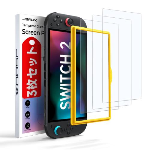 3枚セットSwitch 2対応 強化ガラスフィルム|JSAUX取付ガイド付き・かんたん貼付・9H硬度・気泡ゼロ・..