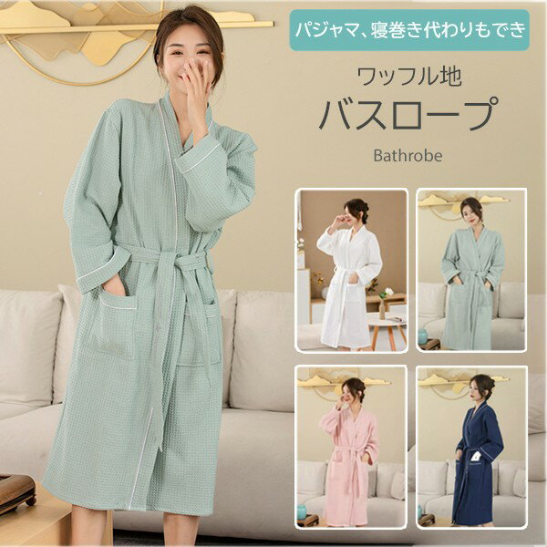 バスローブ ガウン ワッフル織り レディース ママ メンズ 綿100% 大人用 男女兼用 ルームウェア 前開..