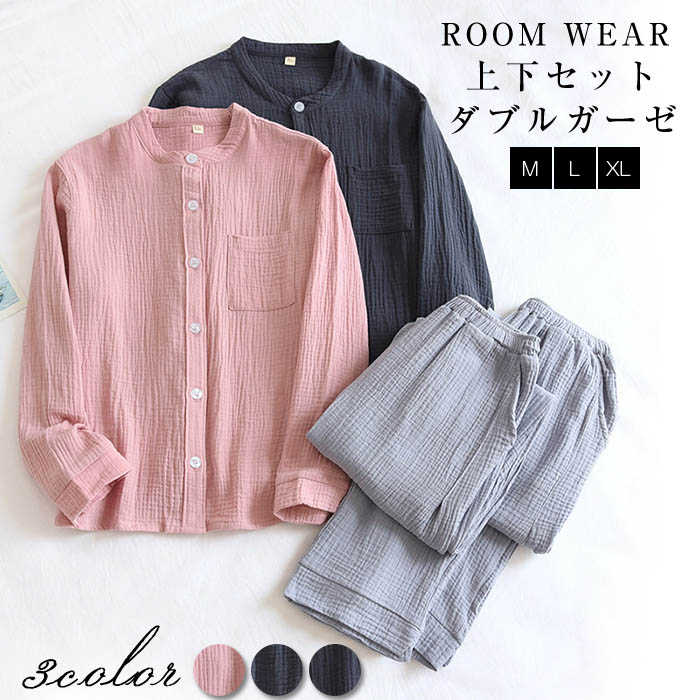 一部即納 ダブルガーゼ 綿100% ルームウェア ガーゼ パジャマ 上下セット セットアップ ペア パジャマ..