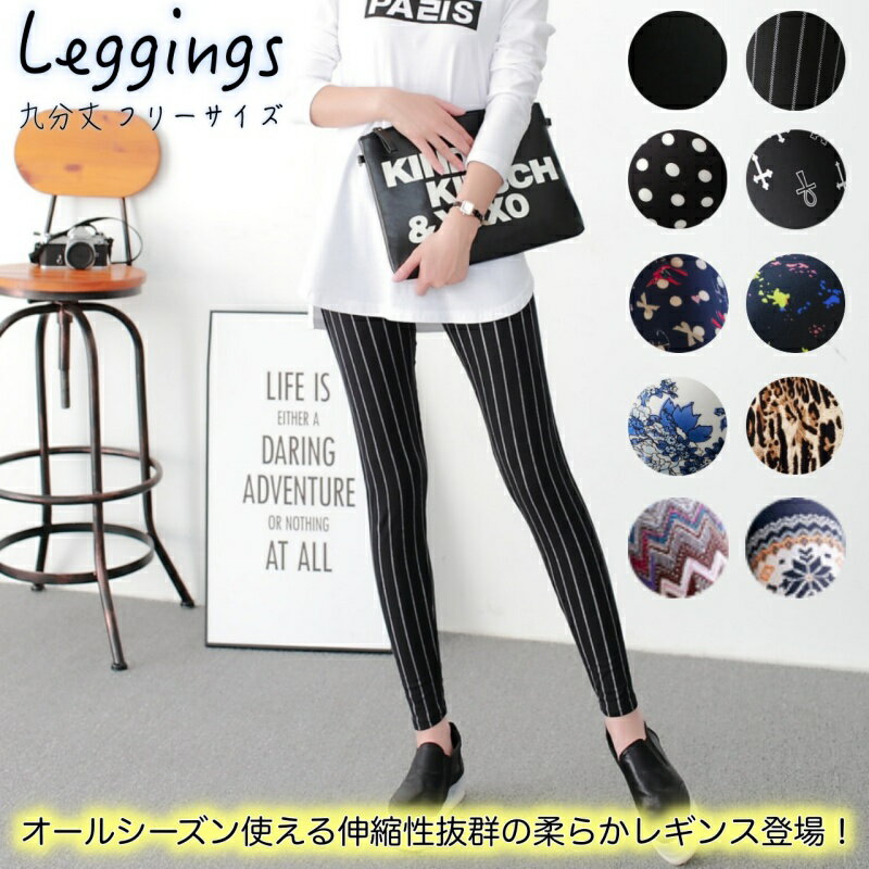 レギンス 9分丈 レディース パンツ 柄物 通気性 伸縮性 ストレッチ素材 美脚 フリーサイズ A