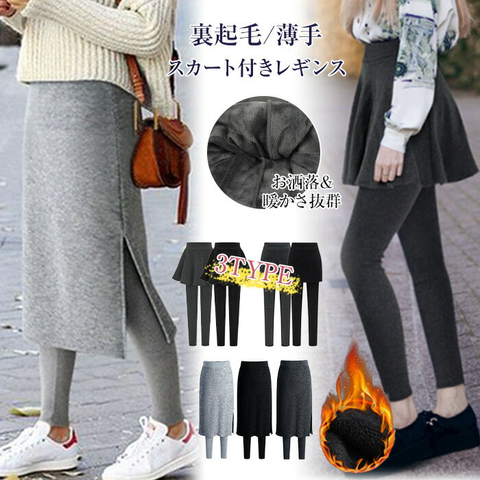 3タイプ選べる M~4XL高品質 裏起毛 レギンス/タイトスカート 裏起毛スカート ミニスカート あったかス..
